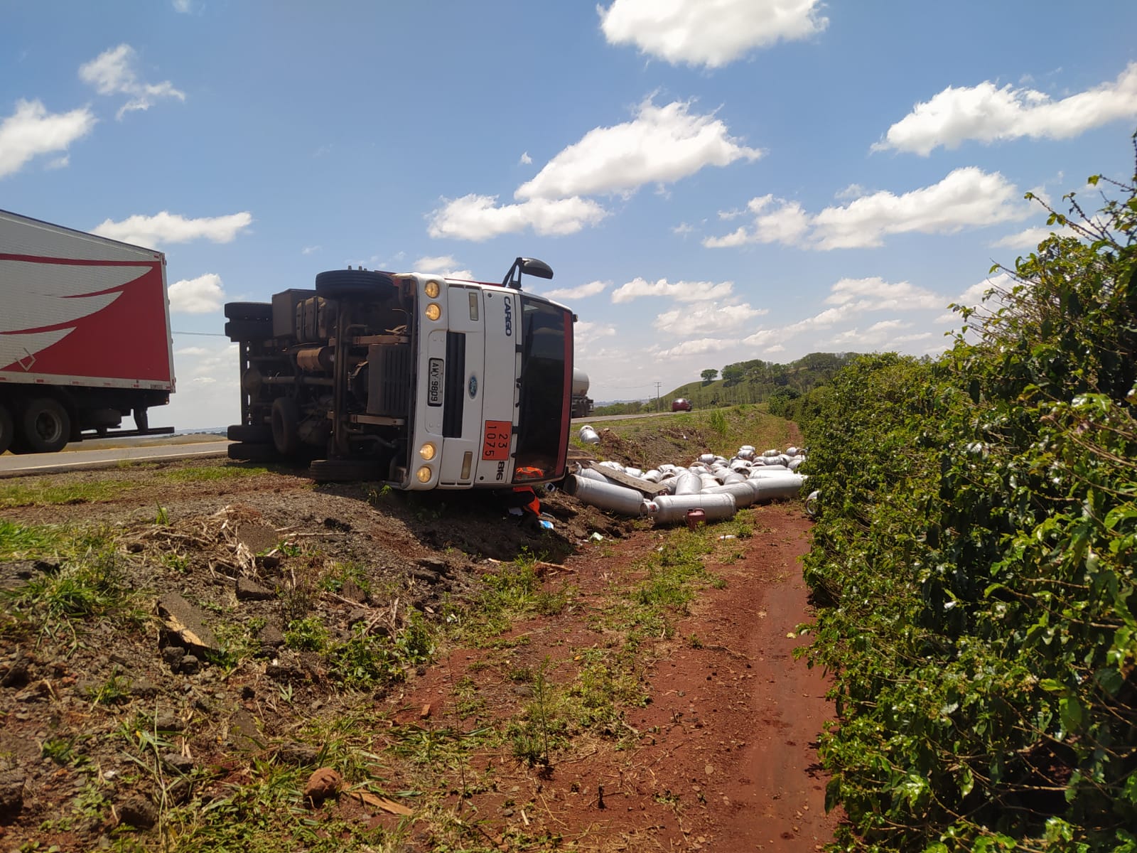 Um acidente envolvendo uma carreta que transportava botijões de gás mobilizou o Corpo de Bombeiros na manhã desta terça-feira (14), na PR-170 (Contorno Norte), entre
