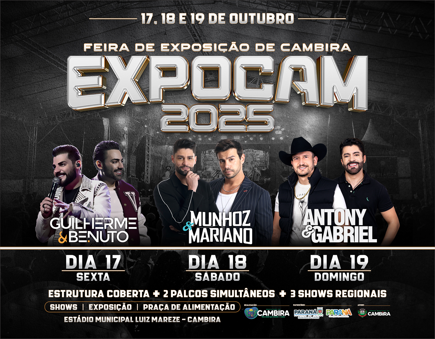Vai começar a EXPOCAM 2025 em Cambira! A cidade já está no clima da festa, que promete agitar a região com muita música, cultura e
