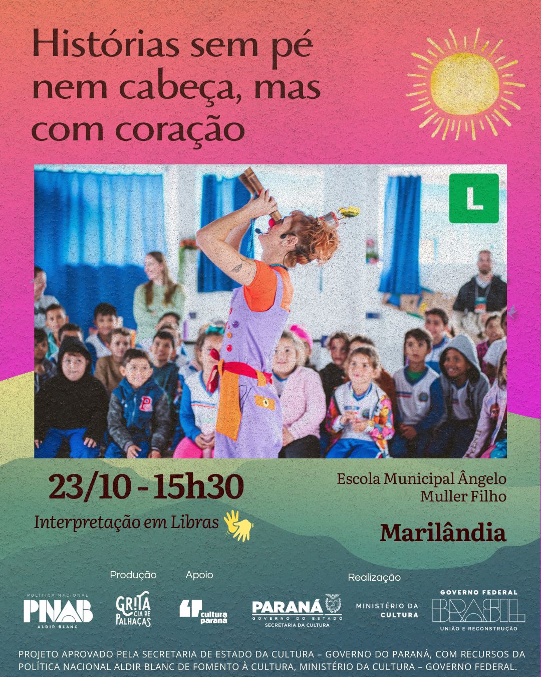 Marilândia do Sul vai receber o grupo de teatro Grita Cia de Palhaças, de Londrina, com apresentações nos dias 23 e 24 de outubro. Quinta-feira
