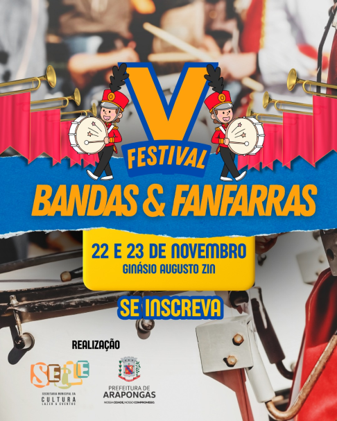 A Prefeitura de Arapongas, por meio da Secretaria Municipal de Cultura, Lazer e Eventos (Secle), informa que estão abertas as inscrições para o V Festival