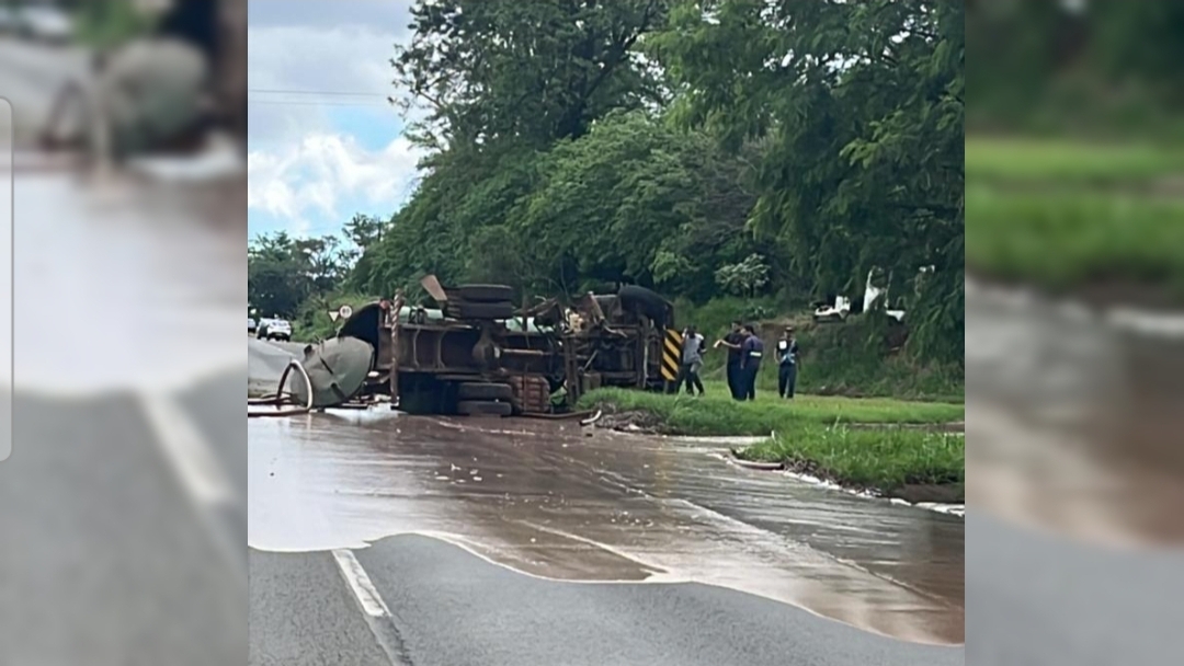 O trânsito ficou complicado na BR-369, entre Rolândia e Cambé, na tarde desta terça-feira (18), depois que um caminhão limpa-fossa tombou ao ter o pneu