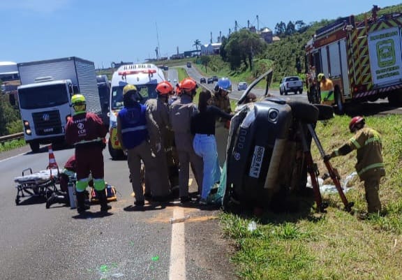 Uma mulher ficou ferida após um acidente registrado no início da tarde desta quarta-feira (19) na BR-376, no trecho que liga Apucarana a Cambira. Ela