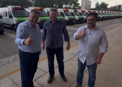 O vereador Lucas Leugi participou nesta quarta-feira (3), em Curitiba, da cerimônia do Governo do Paraná que marcou a entrega de 150 ambulâncias equipadas com