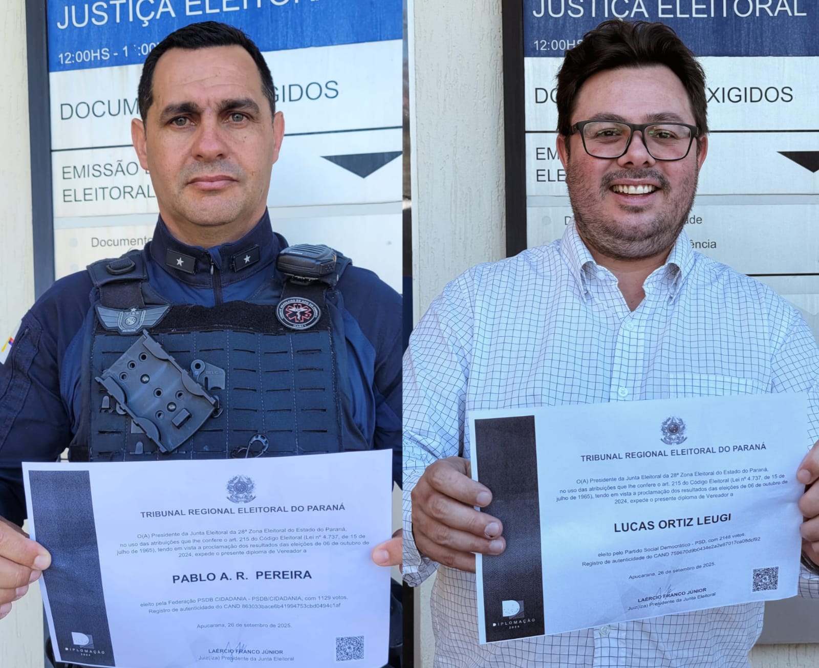 A posse de Pablo da Segurança está marcada para o dia 3 de outubro, às 19h, e a de Lucas Leugi no dia 4 de outubro, às 14h, conforme anunciou o presidente da Câmara, Danylo Acioli.