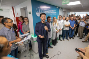 Presenças – Além do secretariado municipal e equipes de profissionais da saúde, também prestigiaram a entrega das novas instalações do ambulatório de dermatologia da AMS o vice-prefeito Marcos da Vila Reis e os vereadores Moisés Tavares, Guilherme Livoti, Gabriel Caldeira, Luciano Facchiano, Pablo da Segurança e Odarlone Orente.