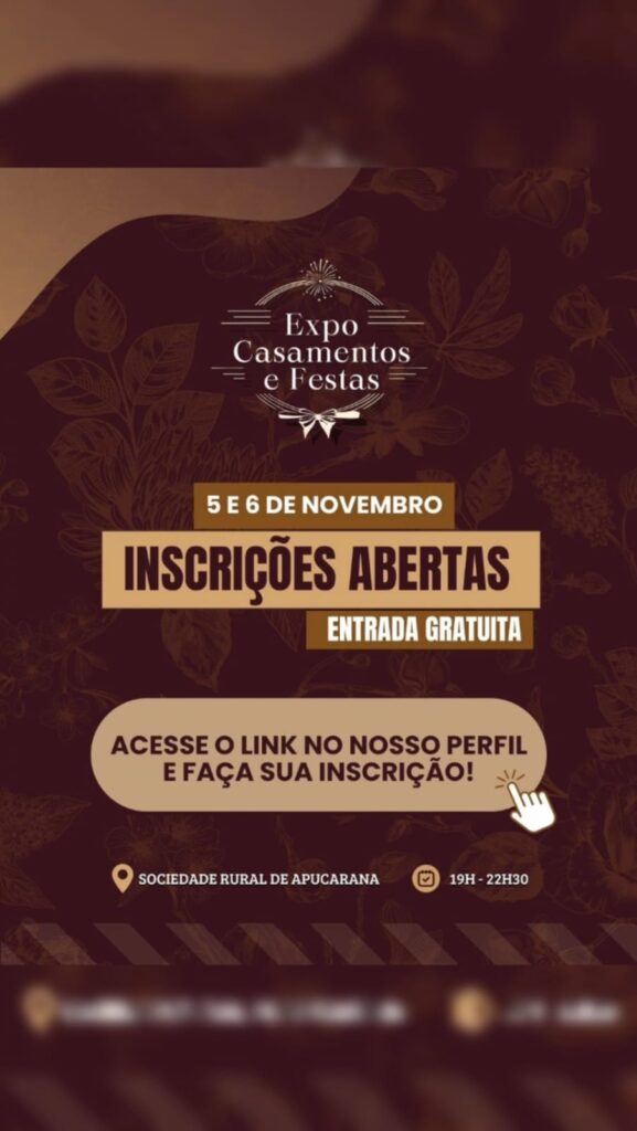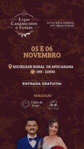 Apucarana vai sediar, nos dias 5 e 6 de novembro, a primeira edição da Expo Casamentos e Festas, um evento inédito na cidade que promete inspirar, emocionar e transformar sonhos em realidade. A feira será realizada na Sociedade Rural de Apucarana e vai reunir os principais profissionais e empresas do setor de eventos.