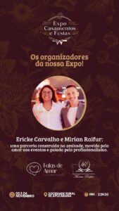 A Expo Casamentos e Festas é uma realização de Falas de Amor Celebrações e Mírian Raifur Assessoria, com apoio da 98 FM Apucarana.