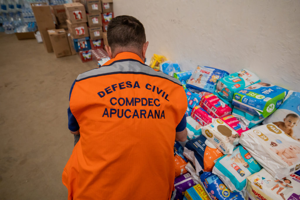 O coordenador da Defesa Civil de Apucarana, sargento Rodrigo Leme, explicou que cada município paranaense ficou responsável por arrecadar produtos específicos, de forma a garantir uma distribuição equilibrada dos donativos. “Estamos recebendo água, leite, sabonete, creme dental, escova de dente, fraldas geriátricas e infantis, além de absorventes. Esses são os produtos pelos quais Apucarana ficou encarregada na campanha estadual”, detalhou.
