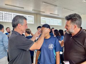 A entrega dos óculos contou com a presença do prefeito Walmir Peres, do vice-prefeito Ivonei Gomes, além de secretários, vereadores, professores, pais de alunos e com a participação dos estudantes que foram contemplados.