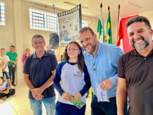 “É uma alegria participar desse momento ao lado do nosso vice, dos Vereadores, da equipe da prefeitura, que todos juntos entregamos esses óculos que vão beneficiar mais de 183 alunos. Nosso município tem uma grande parceria com o Governo do Paraná, e agradecemos a presença do secretário Carboni em nossa cidade”, comenta Walmir