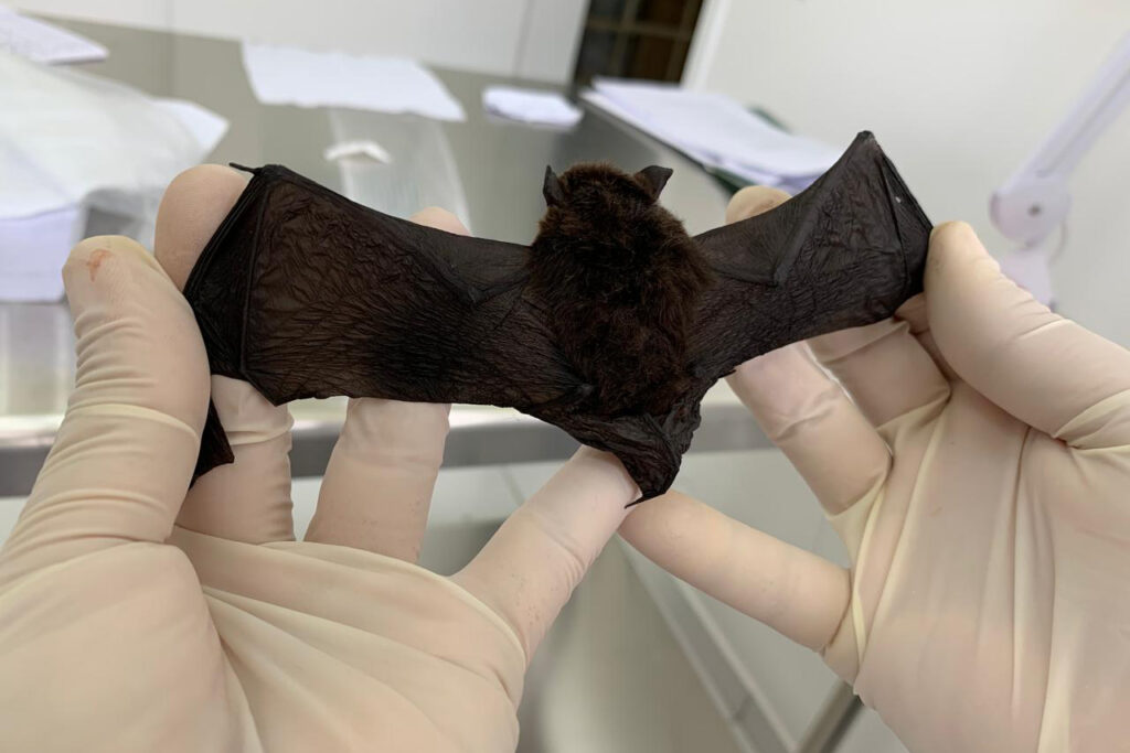 Morcegos, ou outros animais silvestres, não devem ser tocados diretamente, principalmente se estiverem caídos no chão ou forem encontrados em situações não habituais, como voar durante o dia, dentro de casa – sinais de que podem estar contaminados.