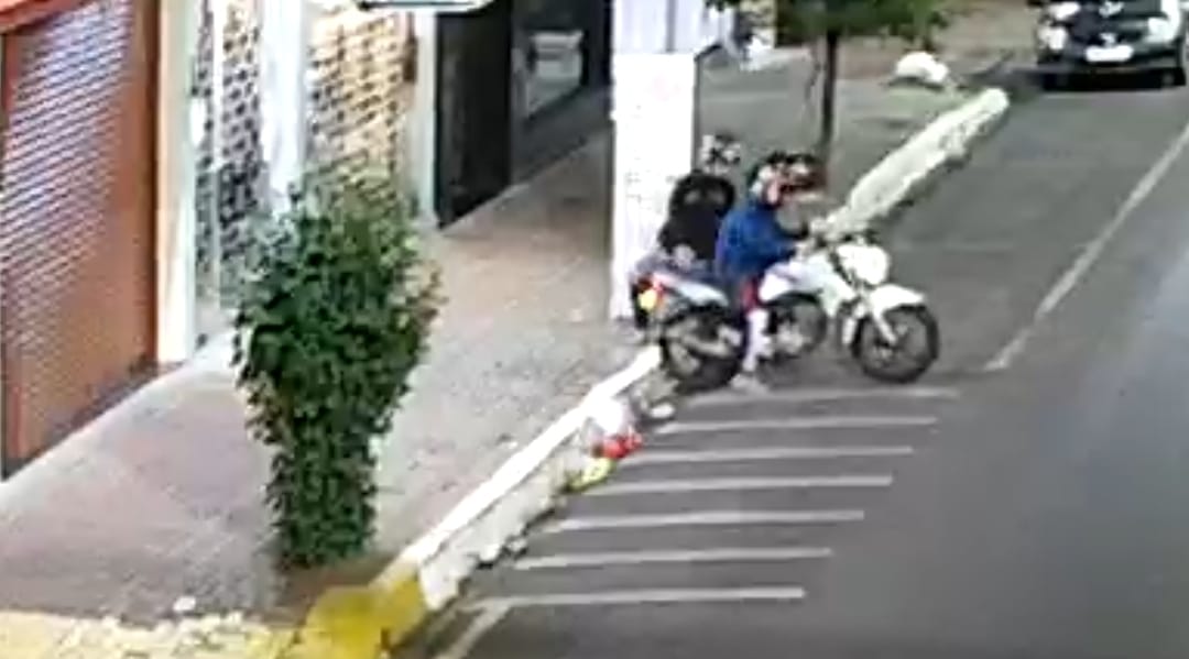 Câmeras de monitoramento da Premier Segurança Virtual registraram toda a ação (Veja o flagrante no final da matéria). As imagens mostram dois homens caminhando pela calçada até o veículo. Um deles usava bermuda escura e moletom azul, enquanto o outro vestia calça escura e blusa preta. Em uma ação rápida e coordenada, um dos suspeitos consegue ligar a moto sem dificuldades, enquanto o comparsa, já com dois capacetes em mãos, se prepara para a fuga. Logo em seguida, a dupla sobe na motocicleta e foge, desaparecendo em questão de segundos.