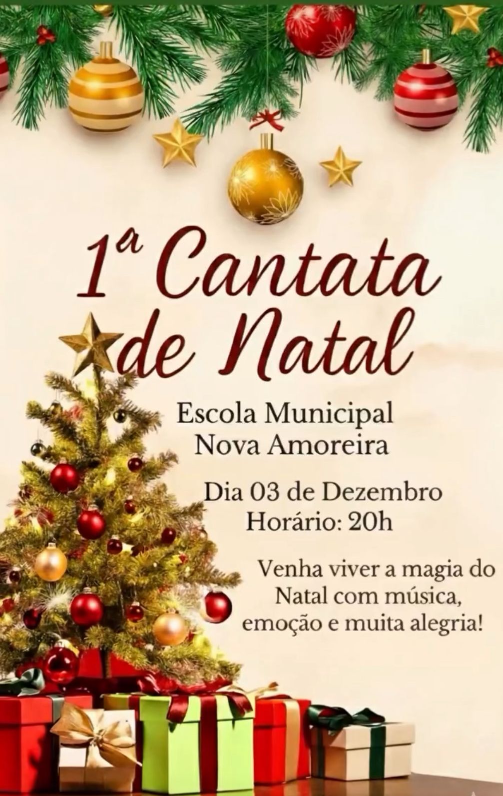 A secretaria municipal de Educação convida a comunidade para participar da 1° Cantata de Natal no Distrito de Nova Amoreira. A cantata será realizada com