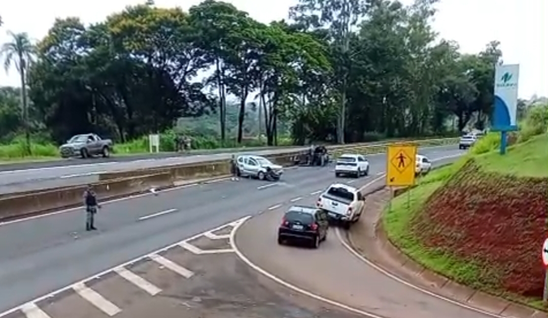 Três pessoas ficaram feridas após uma colisão entre três automóveis registrada na manhã deste sábado (13), no km 237 da BR-376, trecho do Contorno Sul