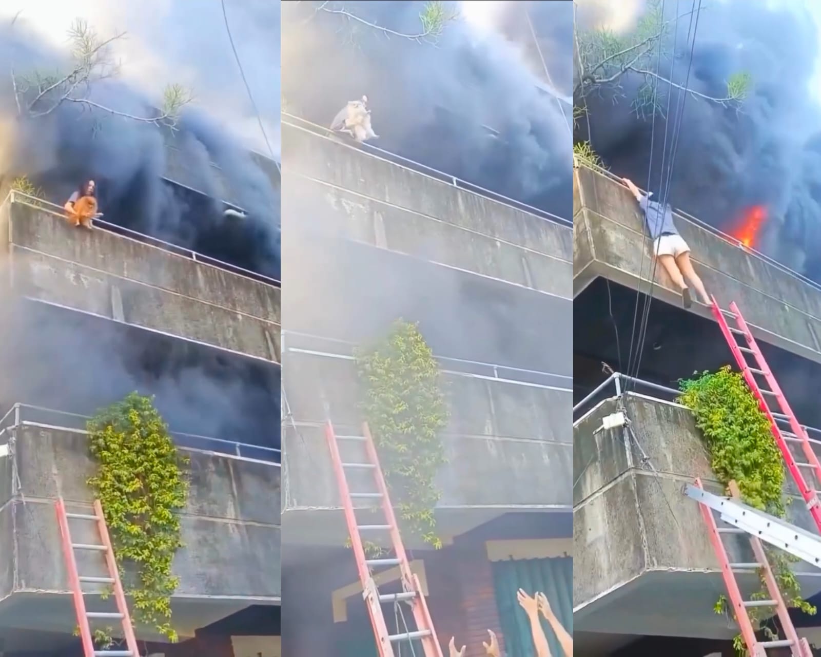 Uma mulher de 32 anos teve um ato coragem durante um incêndio em um prédio residencial na cidade de Mandaue, em Cebu, nas Filipinas. Cercada
