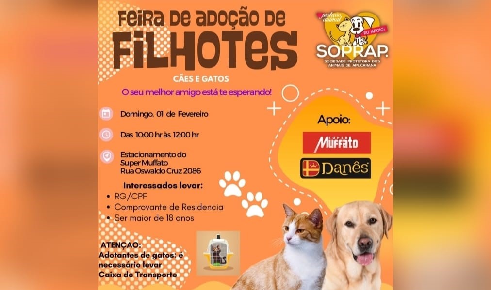 Você está em busca de um novo amigo de quatro patas? Então, não perca a Feirinha de Adoção de Filhotes, que acontecerá neste domingo, dia