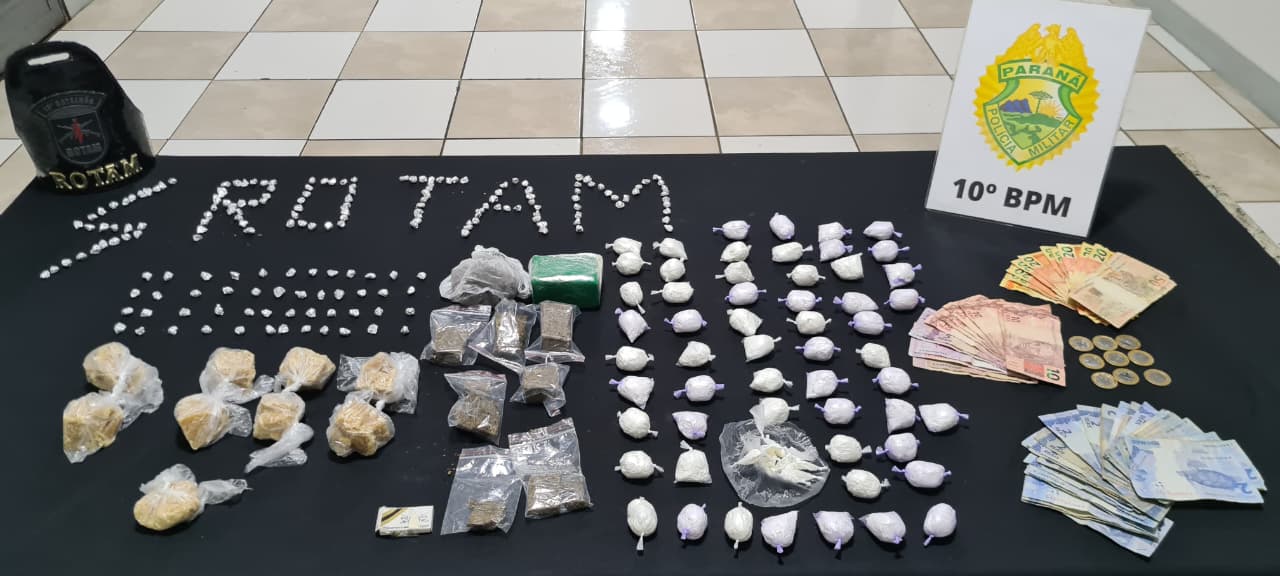 A Polícia Militar de Apucarana apreendeu quase 1,3 kg de diversas drogas durante o cumprimento de um mandado judicial na noite deste domingo (23), na