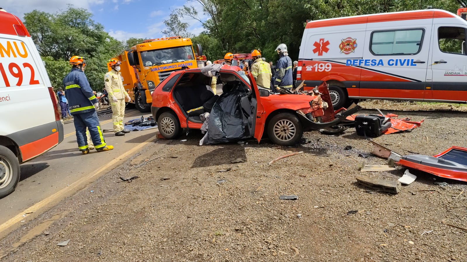 Um grave acidente envolvendo um carro e um caminhão deixou um homem morto e outras três pessoas feridas na manhã desta segunda-feira (24), na BR-369,