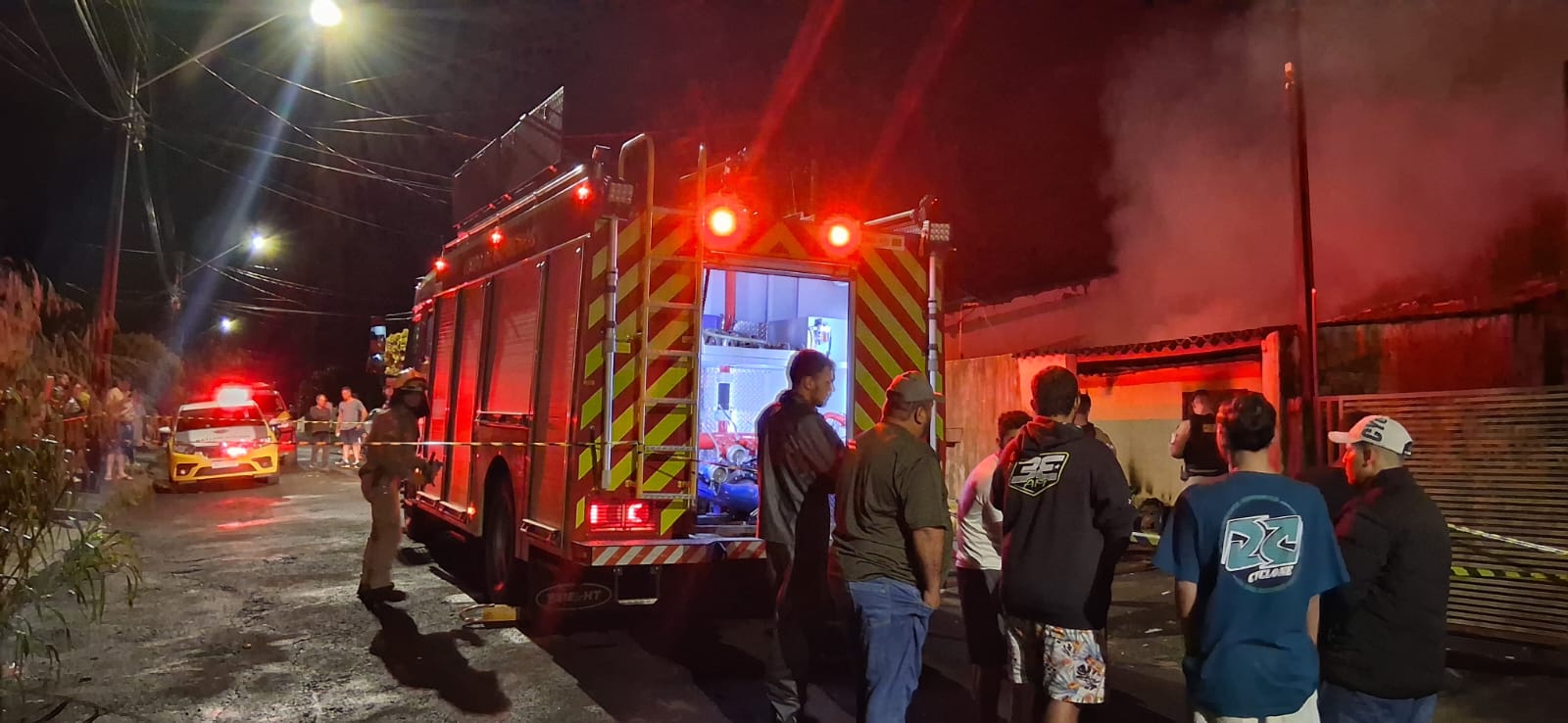 Um incêndio de grandes proporções destruiu completamente uma residência no Núcleo Residencial João Paulo, na região oeste de Apucarana (PR), na noite desta terça-feira (13).