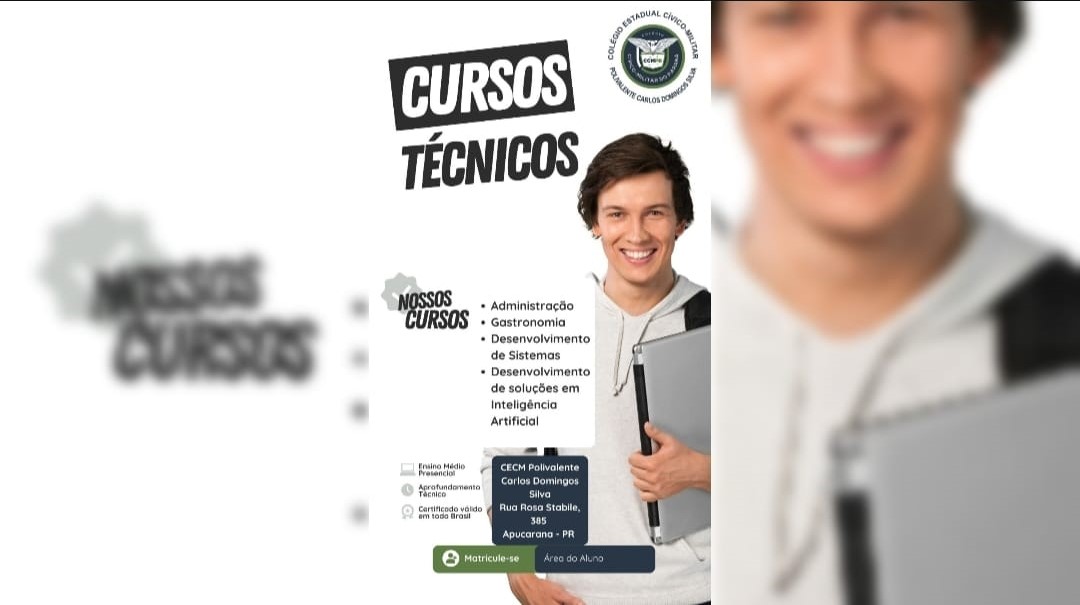 O Colégio Estadual Cívico-Militar Carlos Domingos Silva (Polivalente), de Apucarana, está com matrículas abertas até esta quarta-feira (15) para os cursos técnicos integrados ao ensino médio. As formações são gratuitas e voltadas para jovens que desejam concluir o ensino médio com qualificação profissional.