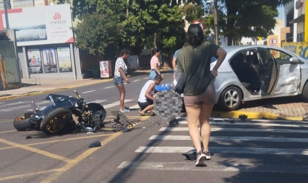 Uma colisão registrada na manhã desta terça-feira (17) mobilizou equipes de emergência no cruzamento das ruas Munhoz da Rocha e Osório Ribas de Paula, na região central de Apucarana. O acidente envolveu uma motocicleta Suzuki de alta cilindrada e um Chevrolet Prisma, por volta das 10h.
