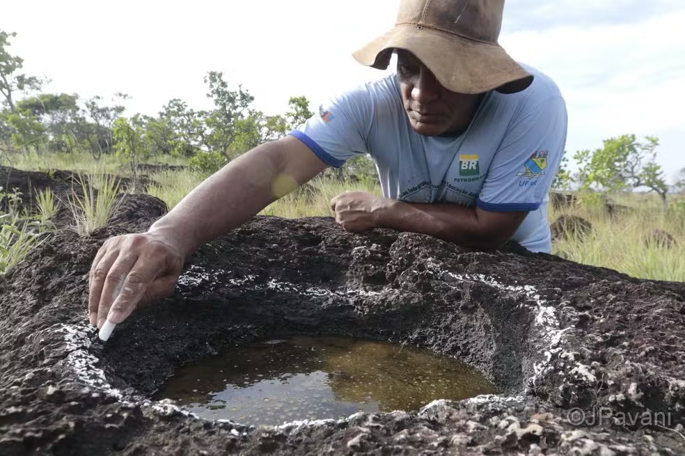 Pesquisadores da Universidade Federal de Roraima (UFRR) encontram pegadas de dinossauro em Roraima. — Foto: JPavani/Reprodução
