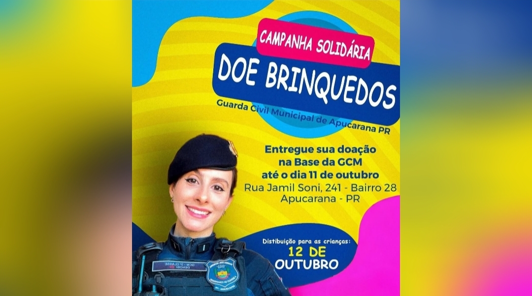 A Guarda Civil Municipal (GCM) de Apucarana está promovendo uma campanha solidária de arrecadação de brinquedos novos ou usados em bom estado. As doações serão destinadas a crianças em situação de vulnerabilidade social, com o objetivo de tornar o Dia das Crianças, celebrado em 12 de outubro, mais alegre e especial.