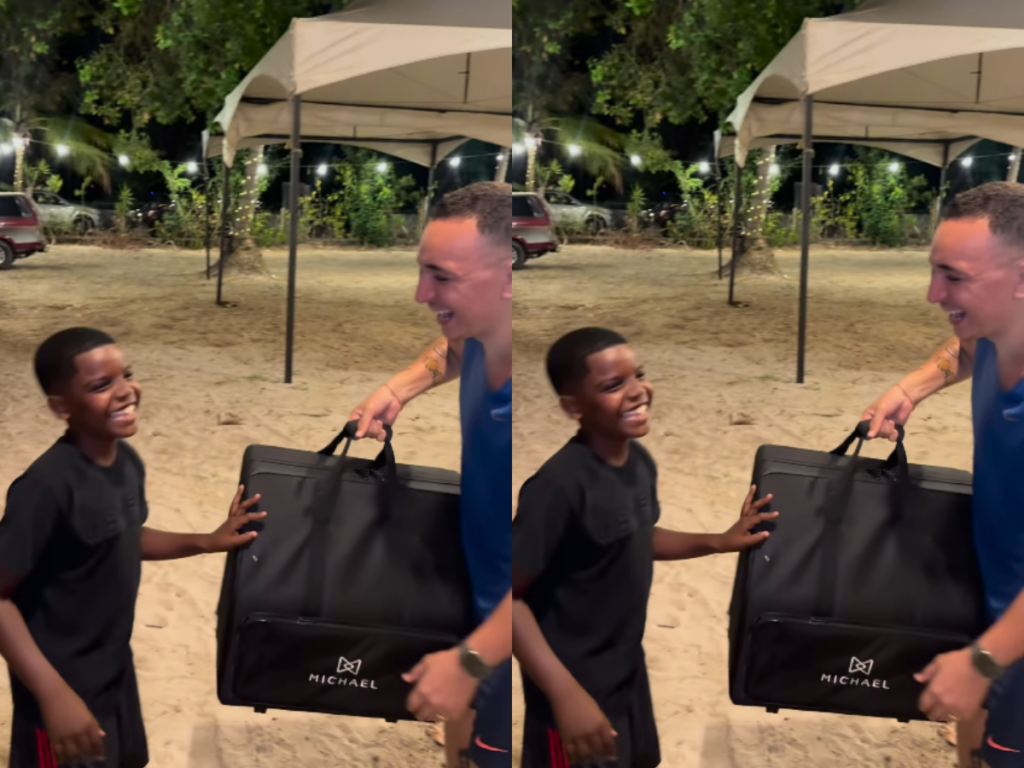 A celebridade entregou a sanfona para o menino e disse: “Aí, ó. Esqueci do seu presente não, viu? Está aí, cara. Ô, a gente não ia esquecer, já ia esquecer… Estava aí”.