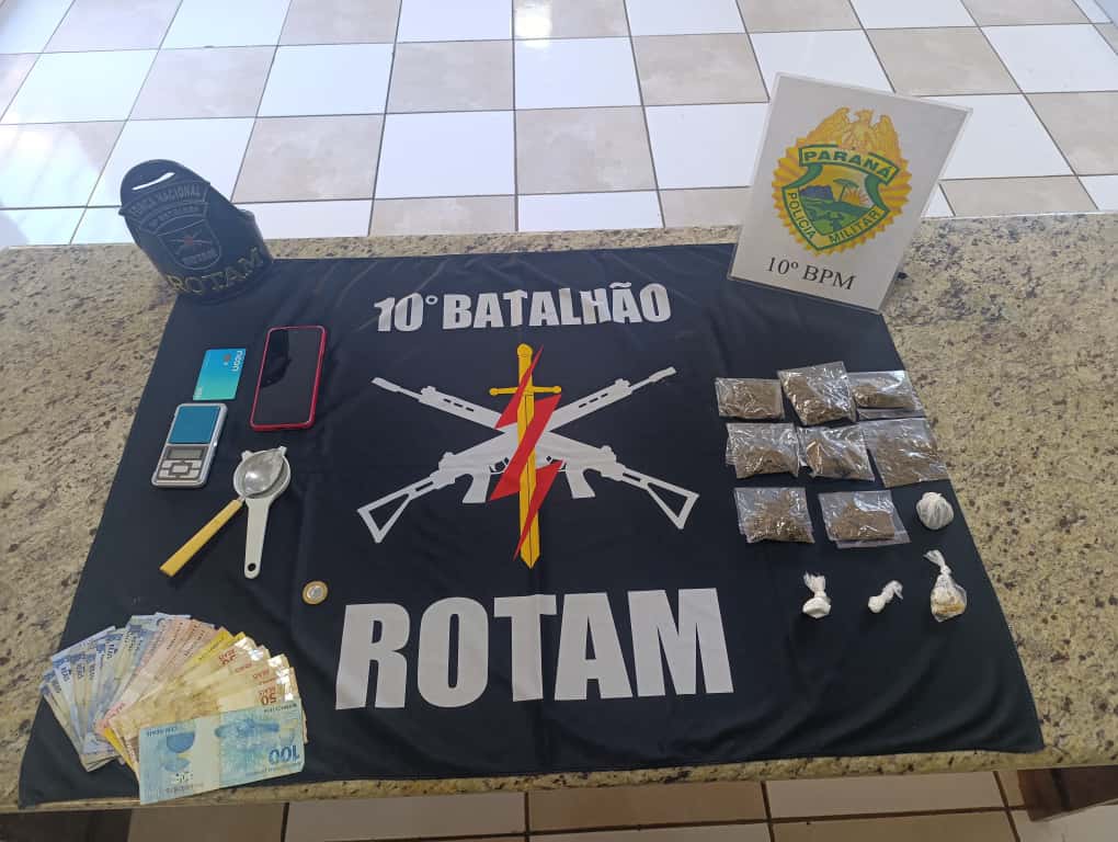 Diante dos fatos, o jovem foi preso e encaminhado à Delegacia de Polícia Civil de Apucarana, junto com as drogas, o dinheiro e os objetos apreendidos, para as devidas providências.