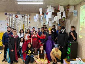 O evento, realizado das 8h às 12h, contou com a participação de 108 alunos dos cursos de Agronegócio (1º e 2º anos), Novo Ensino Médio (1º ano) e 9º ano A do Ensino Fundamental, que se caracterizaram como personagens da literatura brasileira, americana, britânica e infantojuvenil, em uma celebração à diversidade cultural e ao poder transformador da leitura.