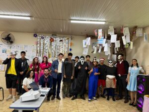 Durante a oficina de encerramento, o professor Rogério Sáber abordou o conto “A Colheita”, de Flannery O’Connor, destacando a importância dos clássicos literários e o direito de todos ao acesso à leitura. A atividade integrou o projeto de extensão da UNESPAR, promovendo o diálogo entre a universidade e a escola pública.