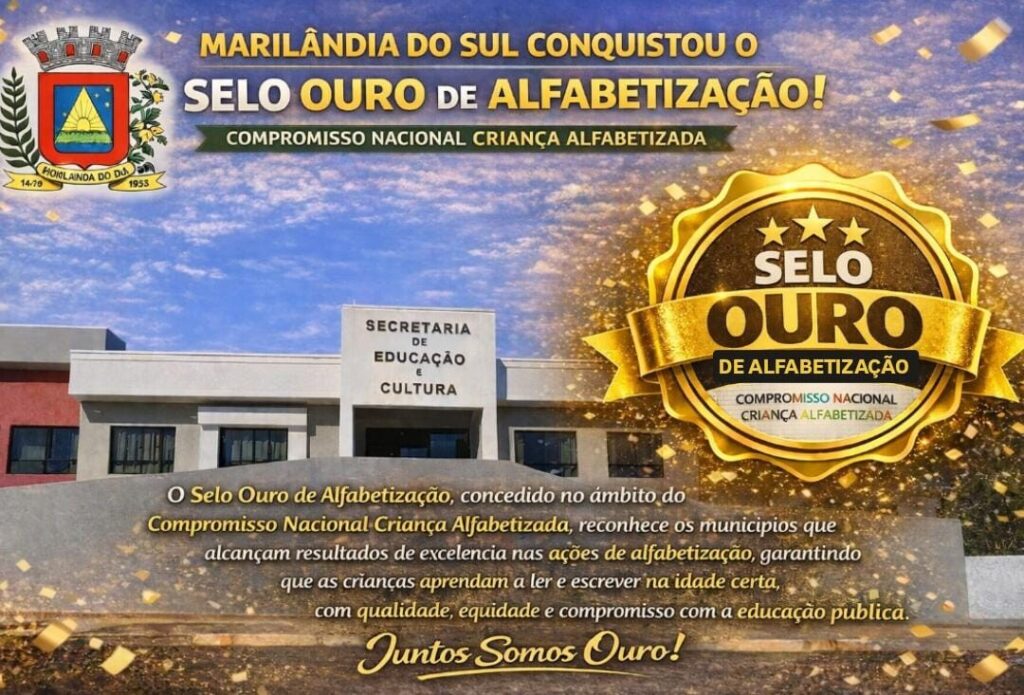 Marilândia do Sul conquista Selo Ouro Nacional de Compromisso com a Alfabetização