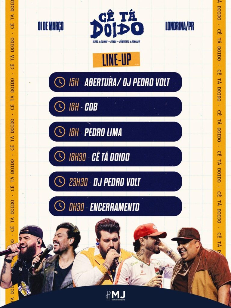 O Cê Tá Doido Festival, um dos principais eventos sertanejos itinerantes do país, já tem datas confirmadas no Paraná em 2026. As cidades de Maringá e Londrina estão na rota da turnê, que deve passar por 15 municípios brasileiros ao longo do ano.