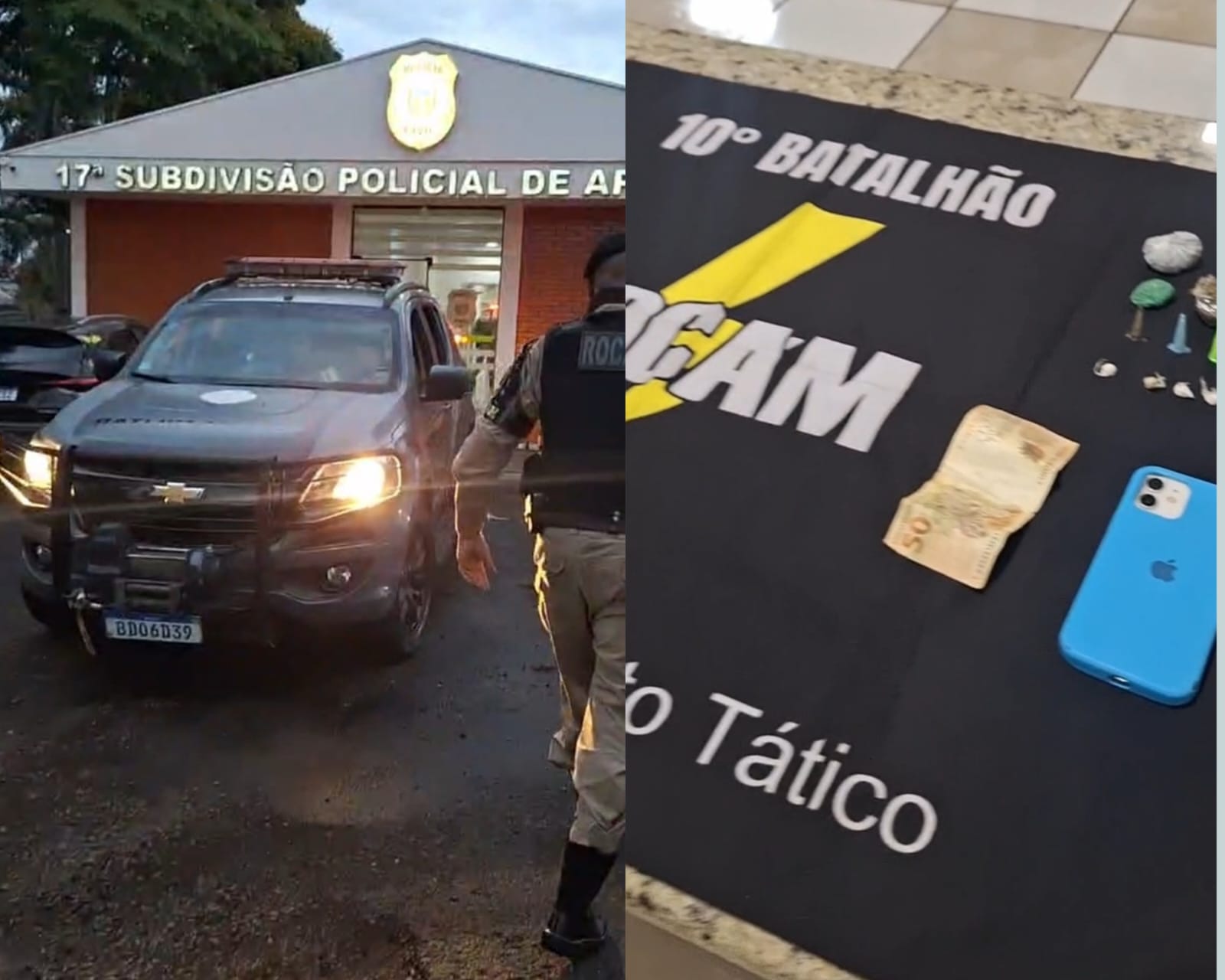 O adolescente detido afirmou ser usuário, mas os policiais registraram que sua condição física não condiz com a de um dependente de crack. Ele foi encaminhado à 17ª Subdivisão Policial de Apucarana, junto com as drogas, o dinheiro e o celular apreendido.