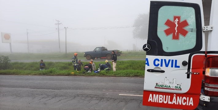 A equipe da Brigada Comunitária foi acionada e prestou os primeiros socorros à vítima, que apresentava suspeita de fratura na perna direita e na região pélvica. Após o atendimento no local, o motociclista foi encaminhado ao Hospital Nossa Senhora de Fátima, em Jandaia do Sul.