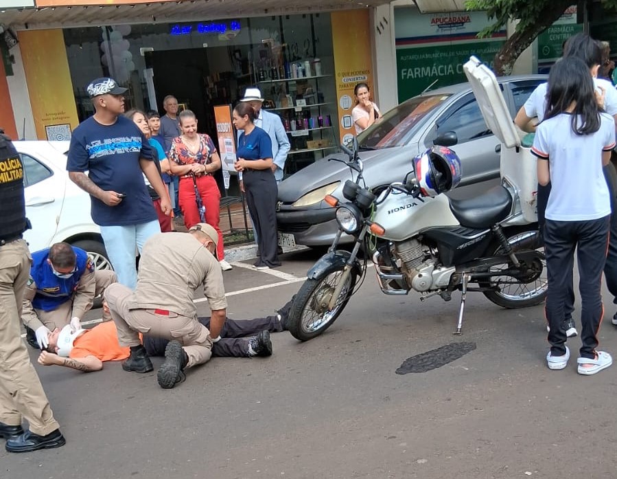 Um entregador de moto ficou ferido em um acidente registrado na tarde desta quinta-feira (30), na região central de Apucarana. A batida aconteceu na Rua Miguel Simião, próximo ao prédio onde funciona o Pronto Atendimento Infantil (PAI).