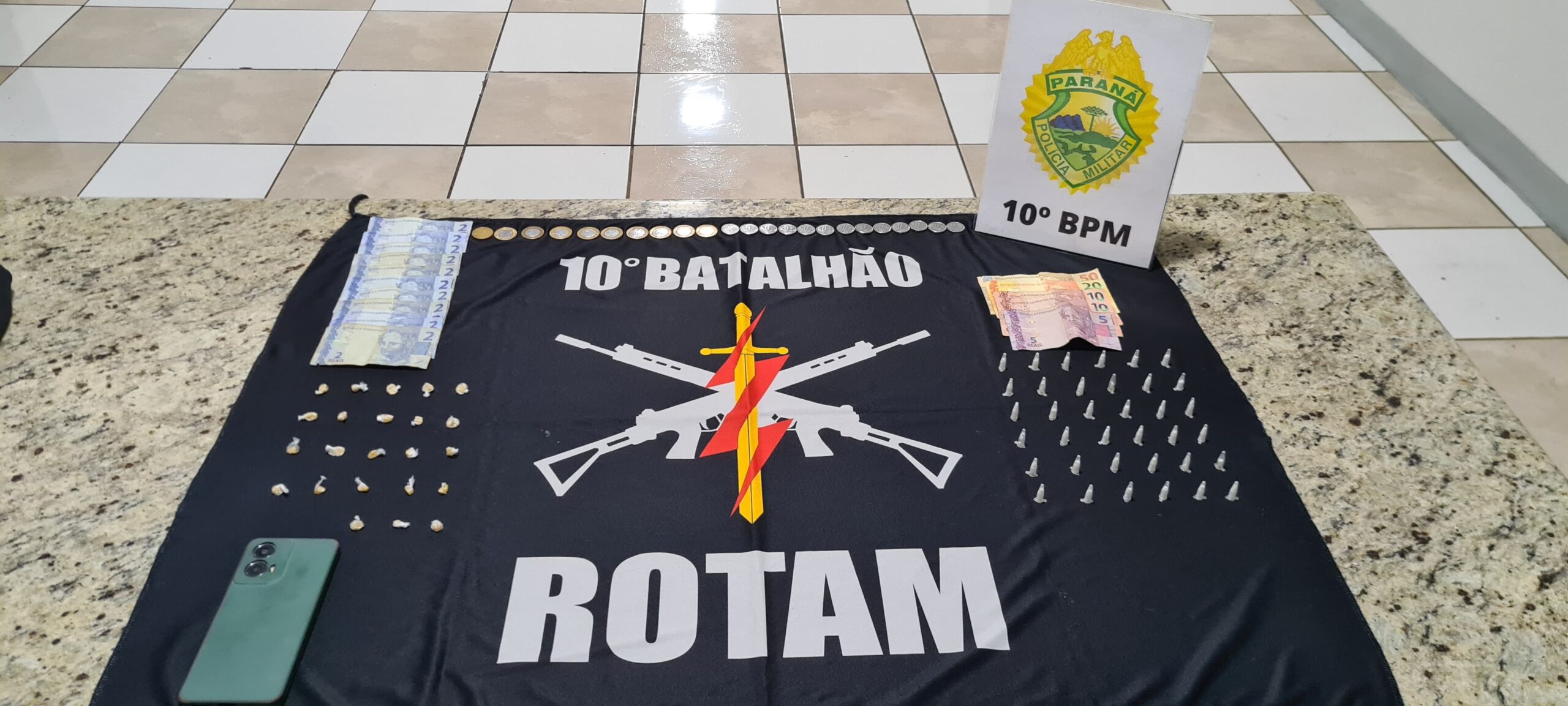 Durante a Operação Cidade Segura, a Equipe ROTAM, da Polícia Militar, prendeu dois homens e apreendeu porções de drogas na madrugada desta quinta-feira (23) em Apucarana (PR). A ação aconteceu na Rua Carlos Zanon, no Jardim Colonial II, região conhecida pelo intenso tráfico de entorpecentes.