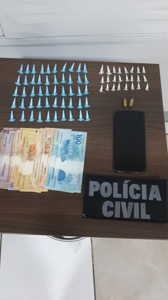 Durante a tarde de quinta, a Polícia Civil prendeu um jovem, de 25 anos, com diversos pinos de cocaína no Jardim Colonial.