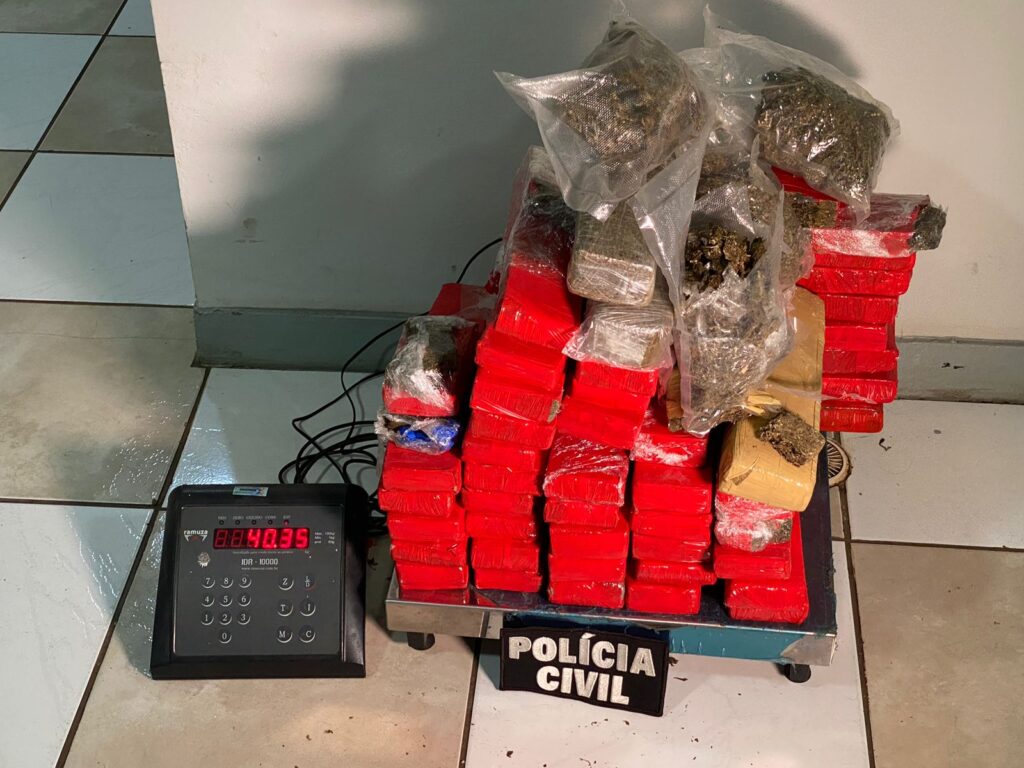 O delegado André informou que foram apreendidos 40 quilos de maconha. Os alvos, dois jovens, de 23 anos, foram encontrados em casas no Núcleo João Paulo e Vale Verde.