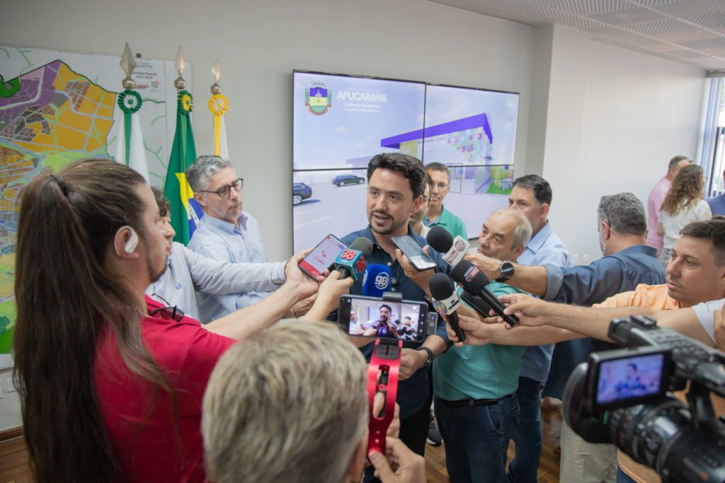 O prefeito Rodolfo Mota apresentou nesta quarta-feira (15/10), em evento no gabinete municipal, o projeto da Casa do Autista de Apucarana. A unidade pública de atendimento especializado a crianças e adolescentes com o Transtorno do Espectro Autista (TEA) e outras condições neurológicas, será construída em terreno central localizado na Rua Miguel Simião, ao lado do Pronto Atendimento Infantil (PAI), e terá dois pavimentos, com estacionamento aberto e também no subsolo, totalizando 950,15 metros quadrados de área construída.