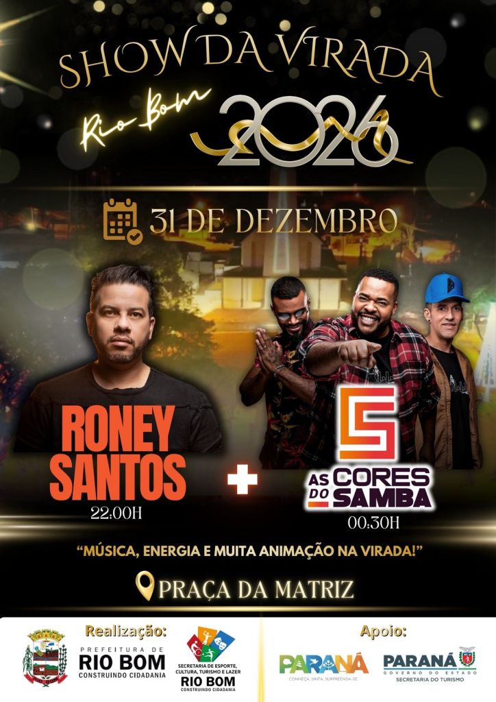O Show da Virada 2026 é uma realização da Prefeitura de Rio Bom, por meio da Secretaria de Esporte, Cultura, Turismo e Lazer, reafirmando o compromisso da administração municipal com o fortalecimento da cultura, do lazer e da cidadania.