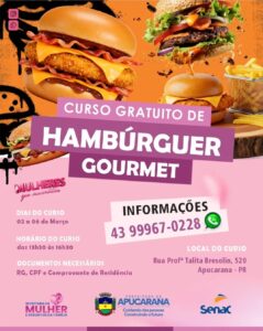 De 02 a 06 de março, será realizado o curso de Hambúrguer Gourmet, das 13h30 às 16h30. No mesmo período, acontece também o curso de Doces para a Páscoa, das 19h às 22h.